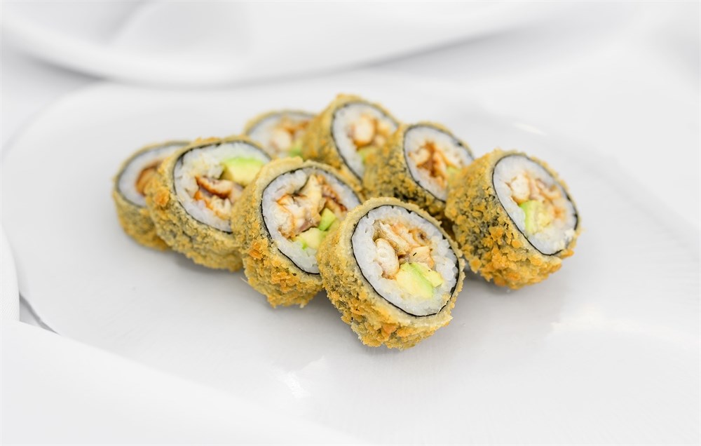 Угорь, рис, нори, авокадо, тесто кляр, сухари панко, 330гр